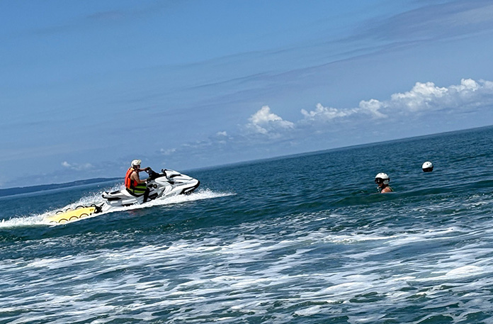 コンパクトで操縦性に優れ、船では進入が難しい浅瀬や岩場にも対応できる高い機動力を活かし、事故現場へ迅速に到達。