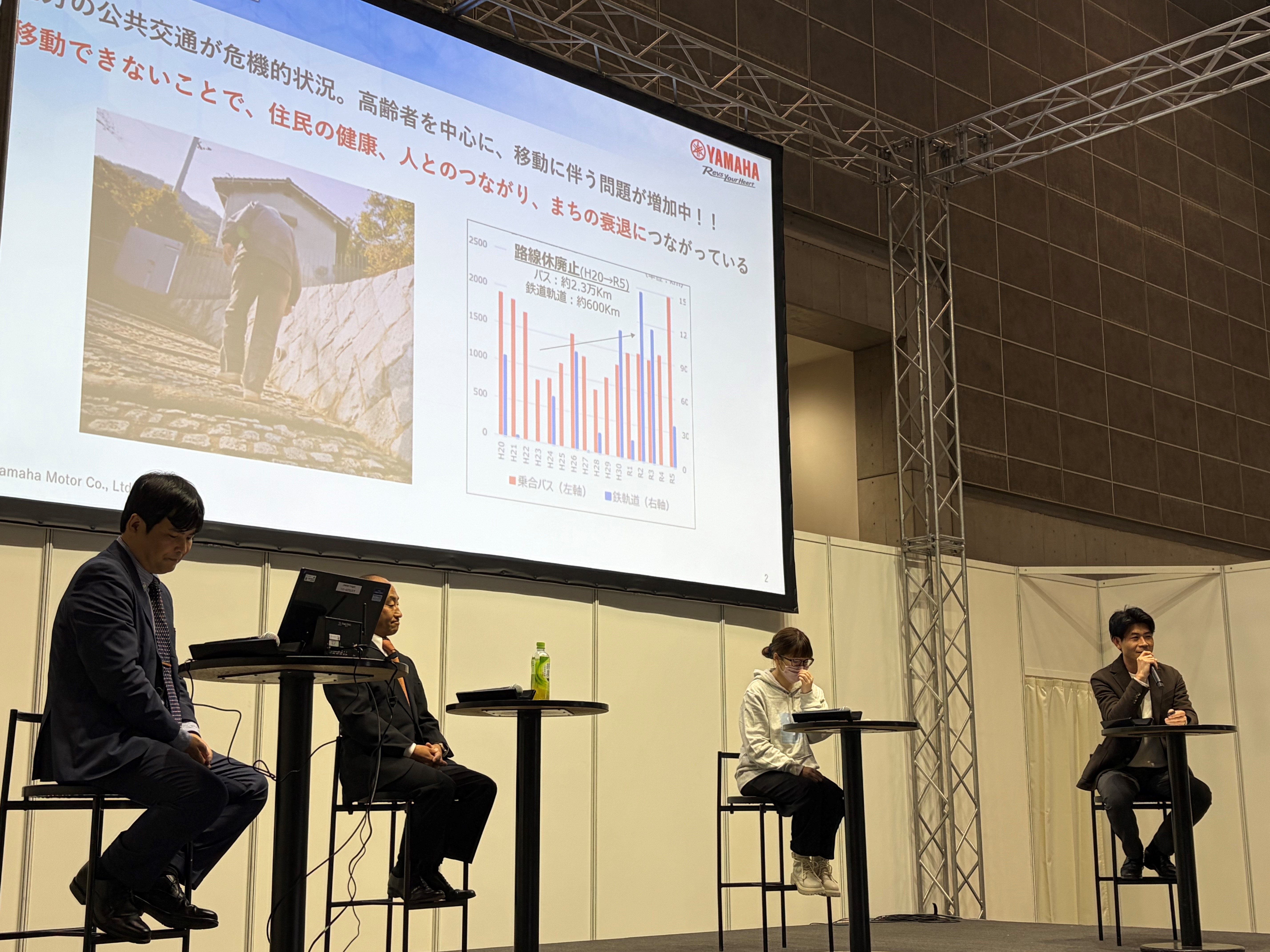 本イベントでは、ヤマハ発動機が目指す3つのアウトカム「モビリティの楽しさ」「豊かな人生」「地球との共生」を軸に、グリーンスローモビリティ(グリスロ)を通じて「人と人」「人と地域」「人と社会」をつなぐコミュニケーションモビリティとして、地域社会に寄り添ったソリューションがどのように持続可能なまちづくりに貢献しているのかをご紹介しました。