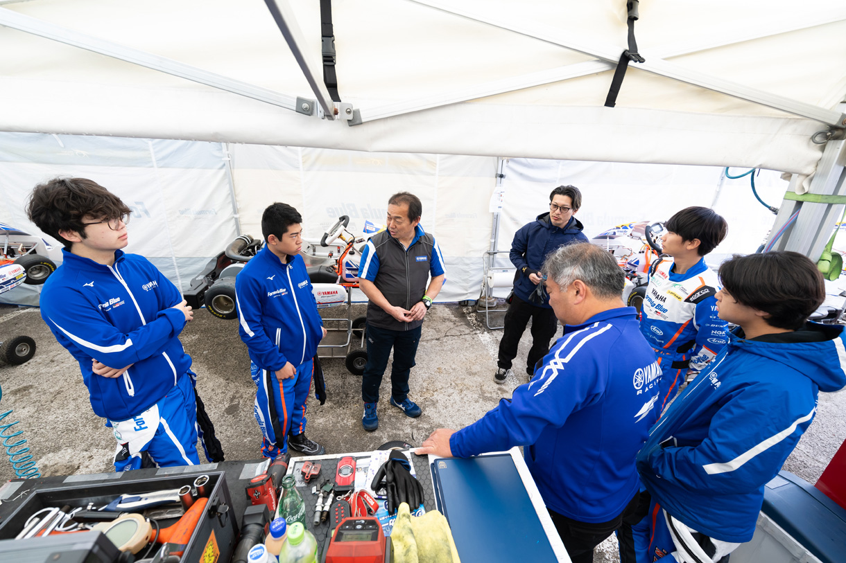 全日本カート選手権FS-125 部門の第1戦・第2戦は、桜も開花した3月28~29日に千葉県・新東京サーキットで開催された。YAMAHA MOTOR Formula Blueからは、いずれもルーキーの中野貴介、飯野暁介、和田朋也の3選手が出場した。今大会では高木監督に変わり野中誠太がアドバイザーを務めた。
