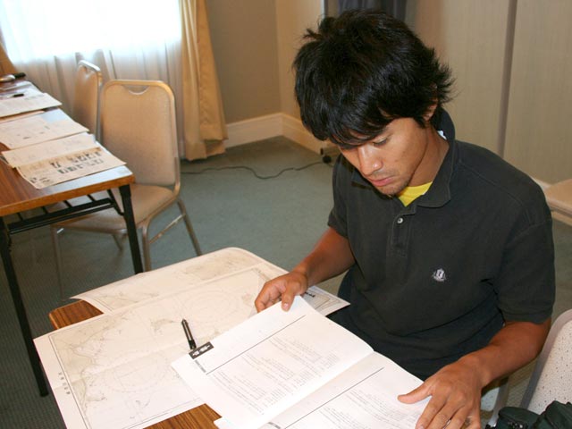 この日もテキスト、資料などについて丁寧に説明してもらった。周りは実際に海に出た経験のある人も居るので、ついていけるか不安だった。