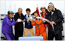 チーム「ミリオン」のメンバーは「月刊釣り画報」(ミリオンエコー出版)の編集スタッフの皆さん。入賞には届かなかったものの、タチウオ、コウイカなどの釣果には満足。ボートフィッシングで釣果を競う一日を大いに楽しんだ。