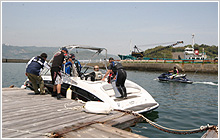 当日は天候に恵まれ、また、マリンジェット販売店のマリンショップアルファ主催という事もあり、マリンジェットのオーナーさんも沢山お見えになっている中での開催となった。初めて見るスポーツボートにマリンジェットオーナーさん達は興味深々のご様子。 用意された2隻のスポーツボート(AR-190,AR-240)は毎回定員一杯のお客様で埋まる盛況ぶり。お昼休みにはじゃんけん大会を開催し、沢山の商品をプレゼントするなど楽しさ一杯の試乗会である。
