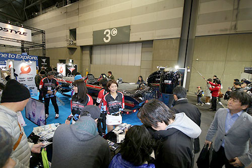会場内に設置された4つのステージでは、バスプロやルアー・タックルメーカーの開発者などが登壇しトークショーが開催されており、ショーの開始と同時に黒山の人だかりができる盛り上がりぶりを見せていました。