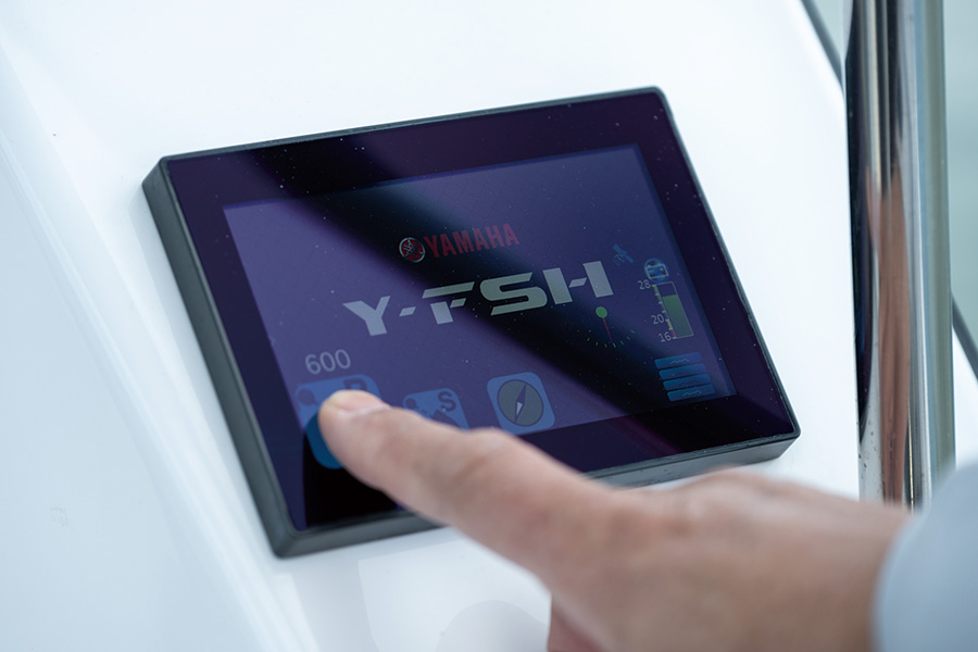 「Y-FSH」は、トヨタ自動車株式会社と共同開発した操船支援システムです。GPSとバウスラスター、エンジンなどを連携させることで一定範囲内での船位維持や、または船首方向の維持を可能とし、ピンポイントで楽しむ釣りや潮流や風に乗せながらの流し釣りを強力にサポート、状況に応じて2種類のモードから選ぶことができます。ウィンドラスやスパンカーなどの艤装が不要になります。