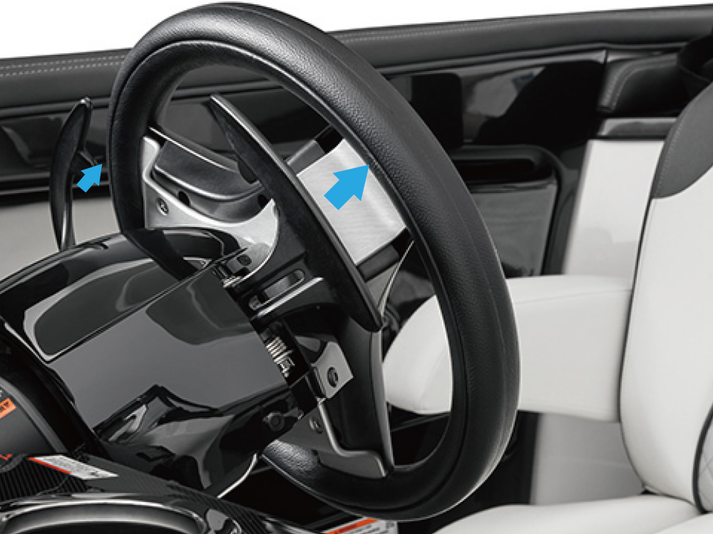DRiVE Xモード切り替えスイッチを押し、それぞれのコントロールボタンとハンドル・パドルシフト操作を組み合わせて微調整をすることで、より直感的で繊細な操船を実現しました。