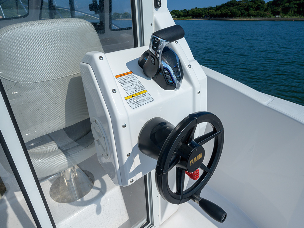 燃料タンクは200リットルと大容量で、長距離クルージングにも対応。遠くのポイントへも安心して釣行できます。パワーユニットには、ヤマハ4ストローク船外機3タイプを用意。高性能フュエルインジェクターやブローバイガス再燃焼システムをはじめ、故障診断システム、ECM:エンジンコントロールモジュール、バンク内排気システム、アイドリング騒音低減システムといったヤマハの最先端テクノロジーを凝縮。優れた動力性能に加え、高い経済性と信頼性、クリーンな排気ガス、低騒音・低振動を高次元でバランス。高性能ハルとのベストマッチングにより、優れた走行性能を発揮します。