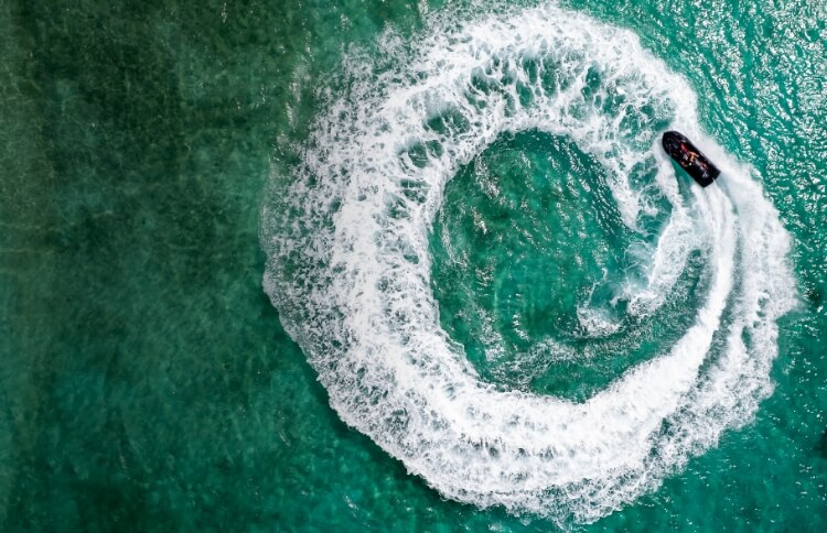 PWC史上、画期的で革新的テクノロジー「RiDE」。左手のRiDEレバー操作による1アクションでの減速・後進を可能にするとともに、「減速・後進」と「前進」、それぞれの機能を左右のレバーに独立させることで、高い即応性と直感的な操縦性を実現しています。特にビギナーには着岸などで効果を発揮します。また、「RiDE」による減速ではリバースゲートがジェットノズルを覆う際、噴流が横方向に噴出するよう設計。これにより推進力が左右にバランス良く分散するため、減速時のノーズダイブの発生を抑制し、安定した姿勢で減速することができます。さらに、減速中でも推進力が得られるため、ステアリング操作によって旋回することも可能です。