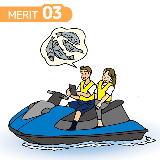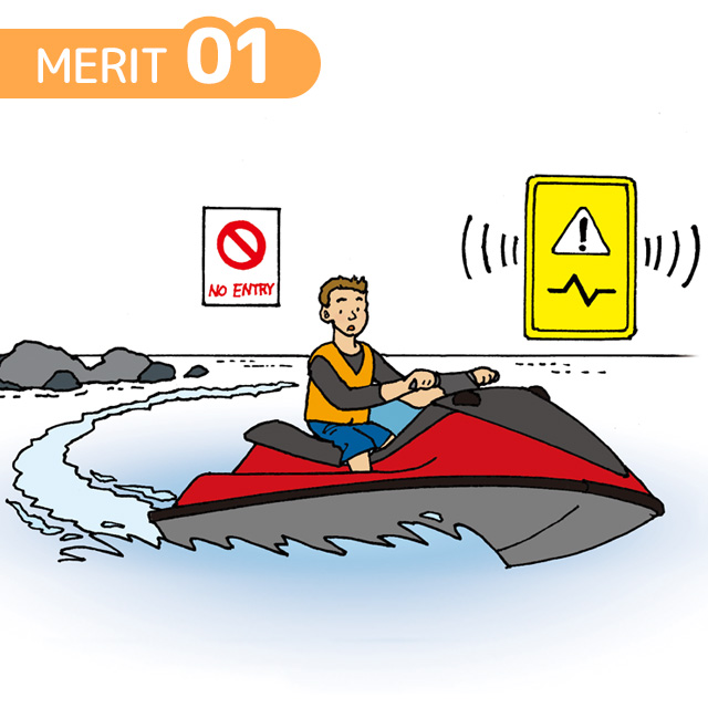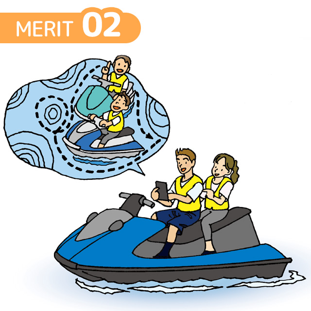 PWCユーザーが安全に航行できるよう、規制エリアの確認や、走行中の航行禁止区域への進入、徐行区域での速度超過をスマートフォンでお知らせします。