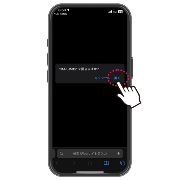 “JM‐Safety”で開きますか?→「開く」をタップします。