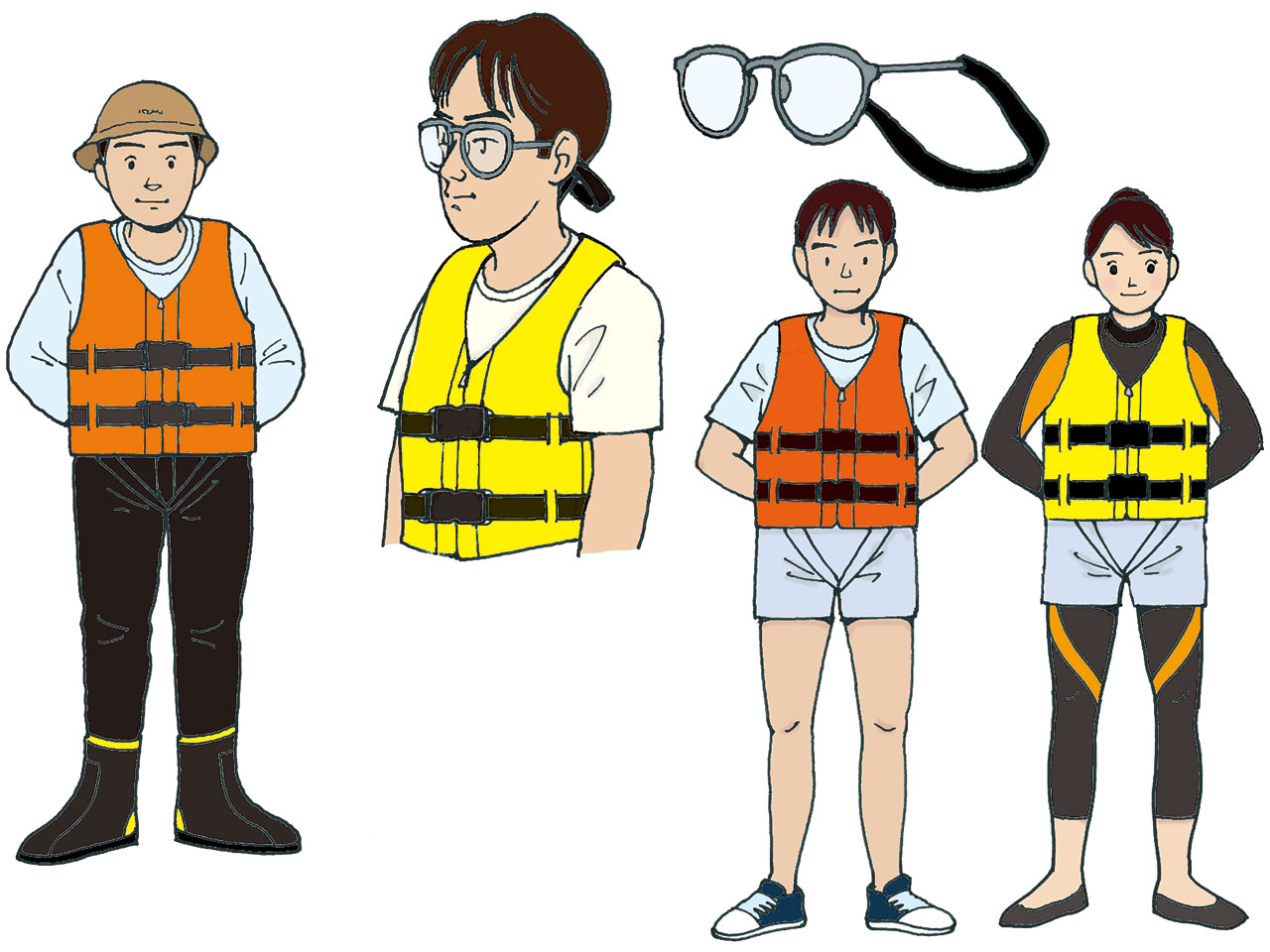 季節、天候、海象に合ったウエアを身に付け、最後にライフジャケットを必ず着用しましょう。