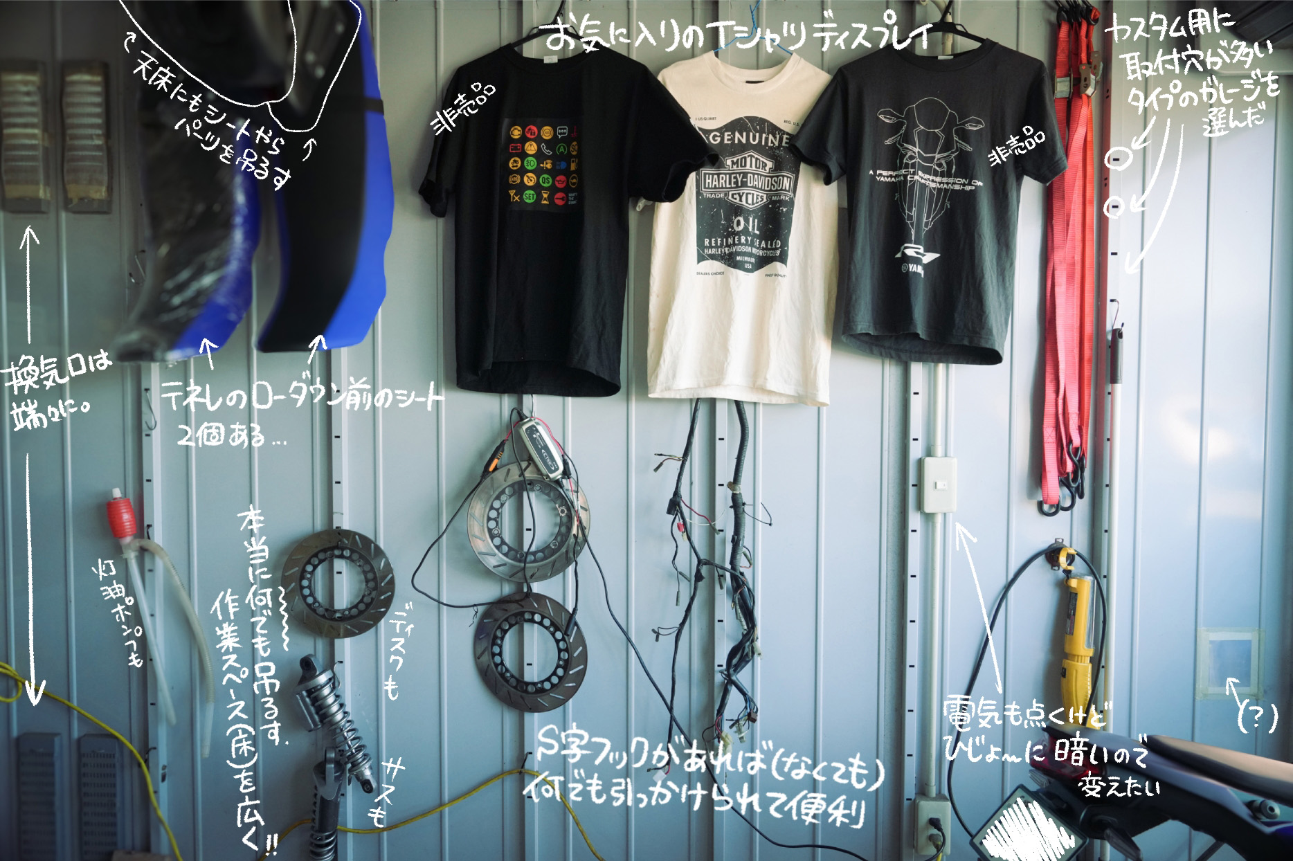 自分だけのガレージと言えどもスペースが限られてるので、必要最低限のモノだけ置くようにしています。