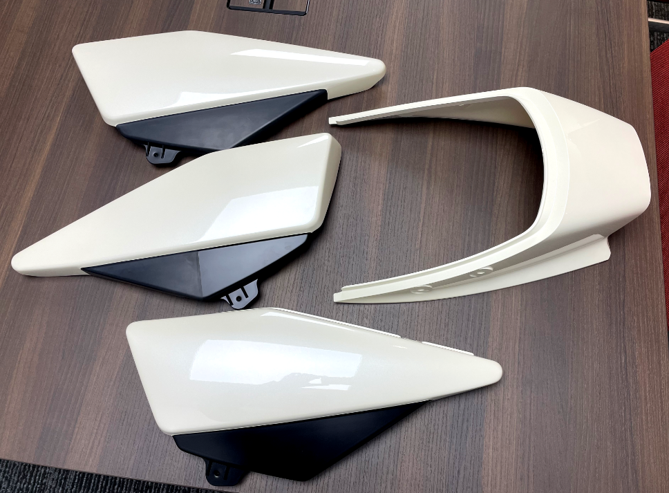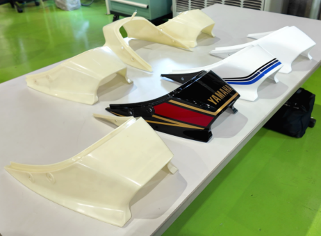 - 金型修正と再トライを経て、RZ250外装復刻のプロトタイプが完成した。