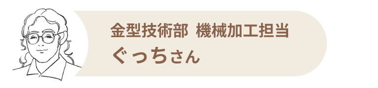 金型の修正加工は、既に完成している部分への追加の加工になるので、削りすぎてしまっていないか?取り扱いの際に製品面に傷をつけてしまっていないか?と特にひやひやした部分でした。特に今回は通常では使用しないフォントの文字を使用した部分だったので、文字の深さや太さが正しいか、最後まで不安な部分でした。