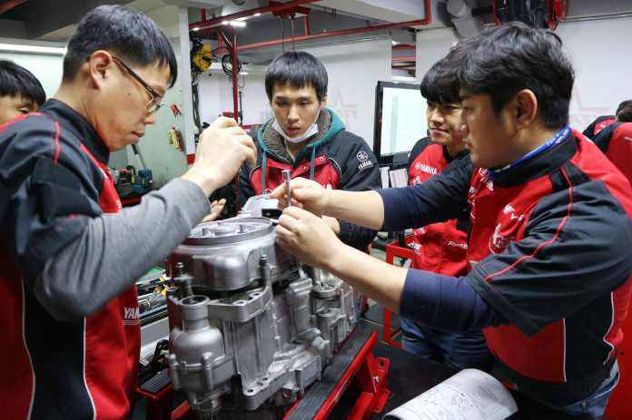 - ヤマハは世界中で同じ品質の整備を提供するため、整備士教育プログラム「YTA(ヤマハ・テクニカル・アカデミー)」を展開している。