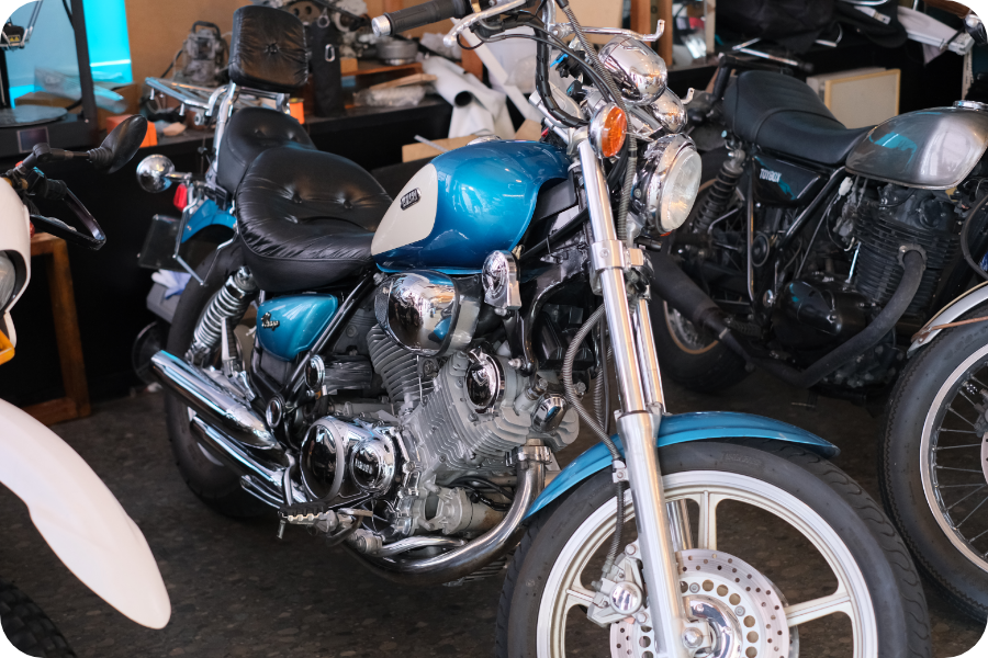 最初は、当時流行していたXVベースのカフェレーサー(TR1やビラーゴ、XVスペシャル)にでもしようかと思い購入しましたが、デザインや豪奢なメッキ、ルーズクッションシートなどが気に入り、