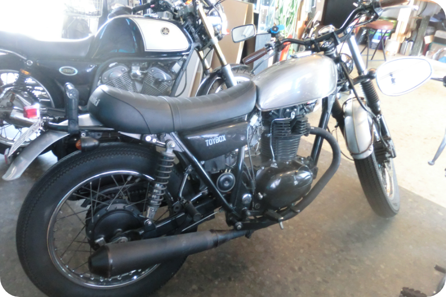 中古で安く購入。一般的には街乗りバイクと思われていますが、実は長距離走行も快適です(タンク容量は6ℓあまりですが)。250ccシングルにしては重く、125ccにも負けそうな非力なエンジンですが、ロングストロークのまったりとした特性で、どんな速度でもパタパタと気持ちよく走ってくれ、数年おきの北海道ツーリングや連泊ツーリングも大抵このバイクです。
