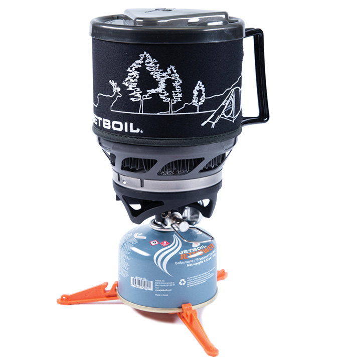 保温クッカーの底に独自のフィンを設けることで優れた熱効率を実現したジェットボイル。ミニモは直径127㎜の広口クッカーを採用することで調理をしやすくしたモデル。火加減の細かな調整が可能なので、とろ火を活かした煮込み料理にも対応する。1万8000円(税抜き)。