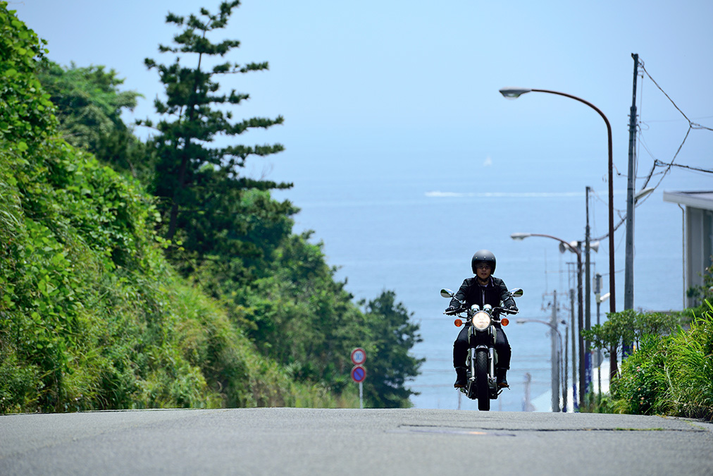 渋滞をやり過ごし、僕は国道沿いにある踏切を渡った。そこから鎌倉山方面へと延びるまっすぐな坂道を登りきったところでSRを停め、後ろを振り返る。大勢の観光客でにぎわう麓の喧騒とは打って変わり、ここには誰もいない。湿度のせいでいまひとつ青くなりきれていない海にはウインドサーフィンのセイルがまばらに浮かんでいるのが見えた。まだわずかに涼しさを含んだ風が吹くと、脳裏に10代の頃から変わらない、バイクツーリングの漠然としたイメージがよぎる。