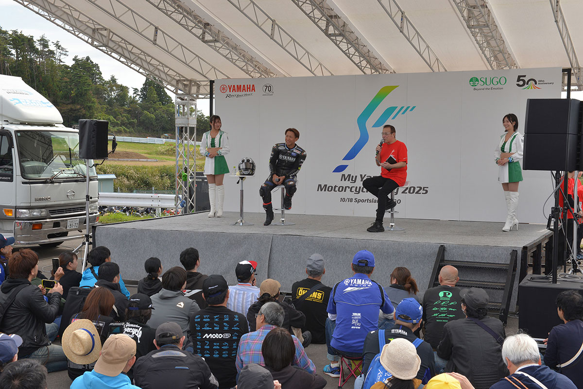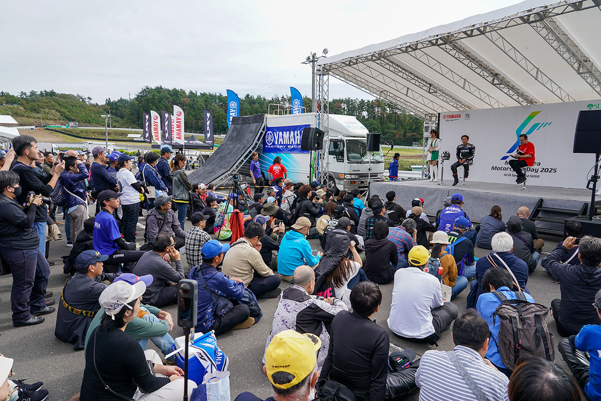 モデルごとの垣根を越えて、全てのヤマハオーナー・ヤマハファンにツーリングする楽しみやライダー同士で語りあう喜びなどを共有していただきたい!その思いを込めて「My Yamaha Motorcycle Day 2025」を10月18日(土)に宮城県・スポーツランドSUGOにて開催しました。ヤマハ発動機創立70周年とスポーツランドSUGO開業50周年という節目に開催された会場では、モーターサイクルショーを超えるモデルラインナップTouch&Tryのほか、歴史車両のデモンストレーション走行や、開発者によるライブプレゼンテーションなどヤマハならではの充実した内容で参加者の皆様に楽しんでいただきました。またメインステージでのトークショーや、特設ステージでのトライアルバイクによるデモ走行は大いに盛り上がりました。さらにバイクだけに留まらずPAS/YPJ試乗も併催し、ヤマハブランドを体感いただきました。 駐車場では、新型のモデルから懐かしいモデルまでたくさんのバイクが集まり、ヤマハファン同士の交流の場としてコミュニケーションの輪が広がっていました。 「My Yamaha Motorcycle Day 2025」にご参加いただいた皆さま、たくさんの笑顔をありがとうございました! 当日の様子はブログで詳しく紹介しています。