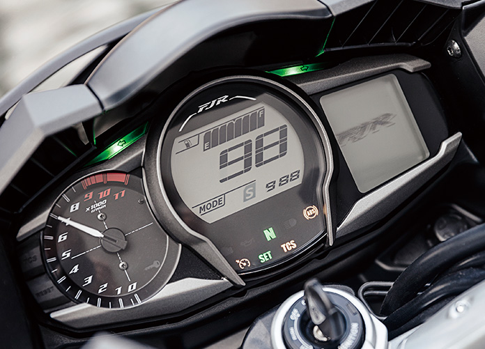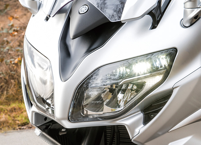 開発コンセプトは『頂点スポーツツアラー、FJRブランド熟成~より楽しく、より快適に~』。その主たるディテールが6速トランスミッション化であり、灯火器類のフルLED化であり、コーナーリングライトの採用なのです。
