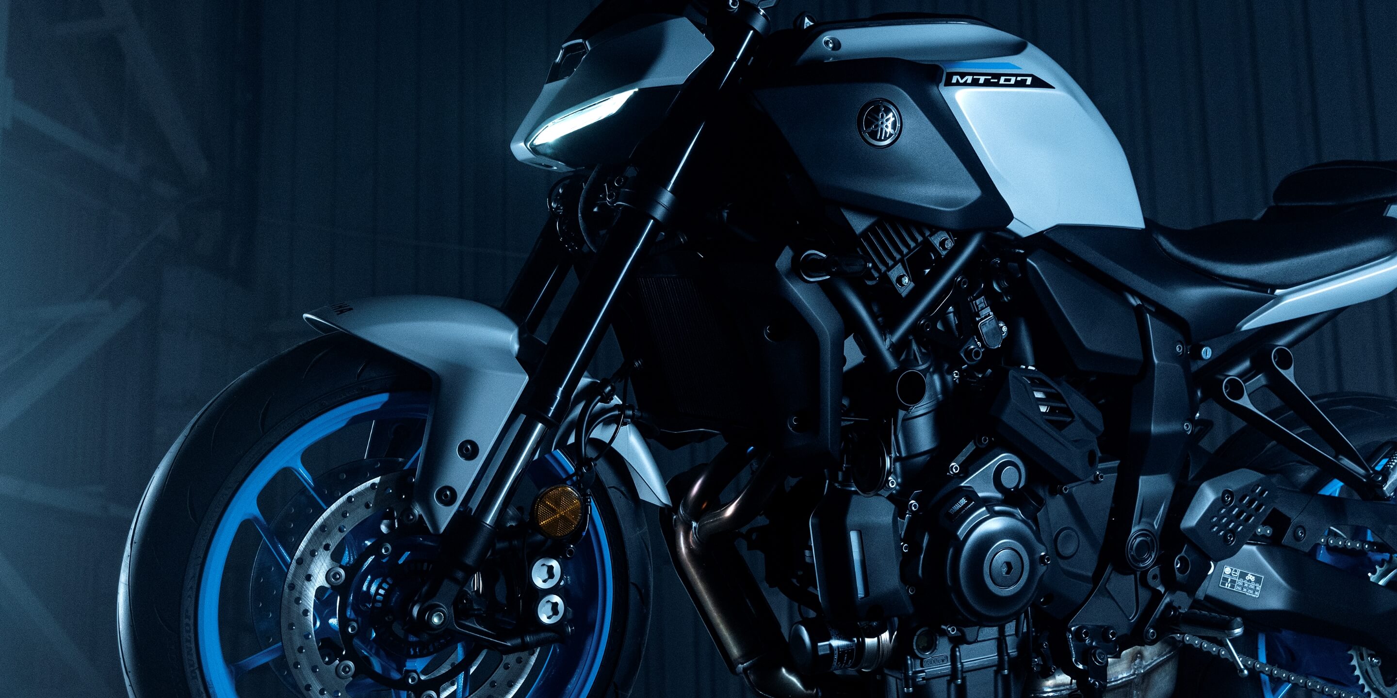 鍛造ホイールに匹敵する強度と粘り強さのバランスが整ったヤマハ独自の鋳造技術が生み出したスピンフォージドホイールをMT-07として初採用。2021年モデルMT-07と比較してフロントは410g、リアは70g軽量化に貢献、それに伴い慣性モーメントは、4%の低減を実現。MT-07特有の俊敏なハンドリングを支える。