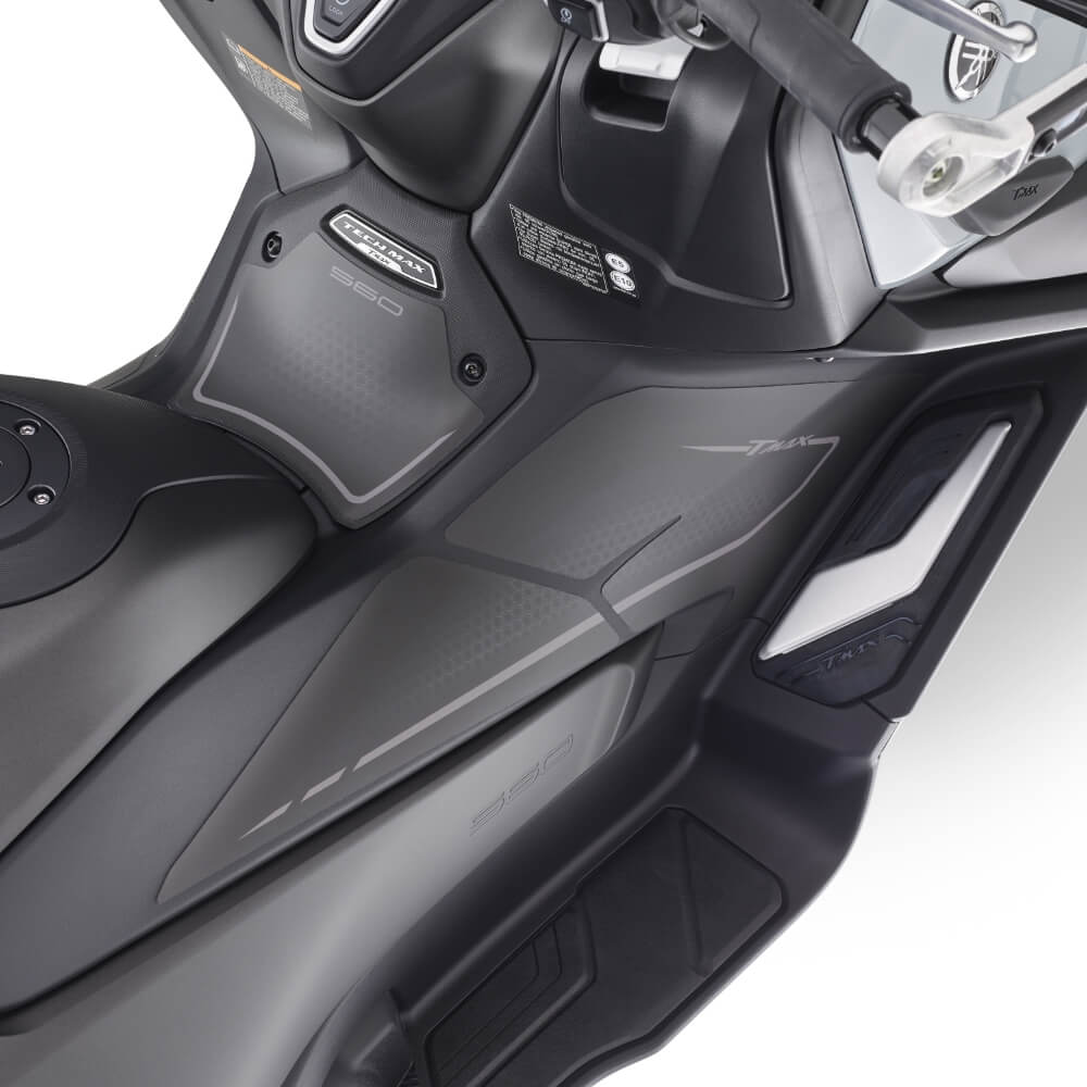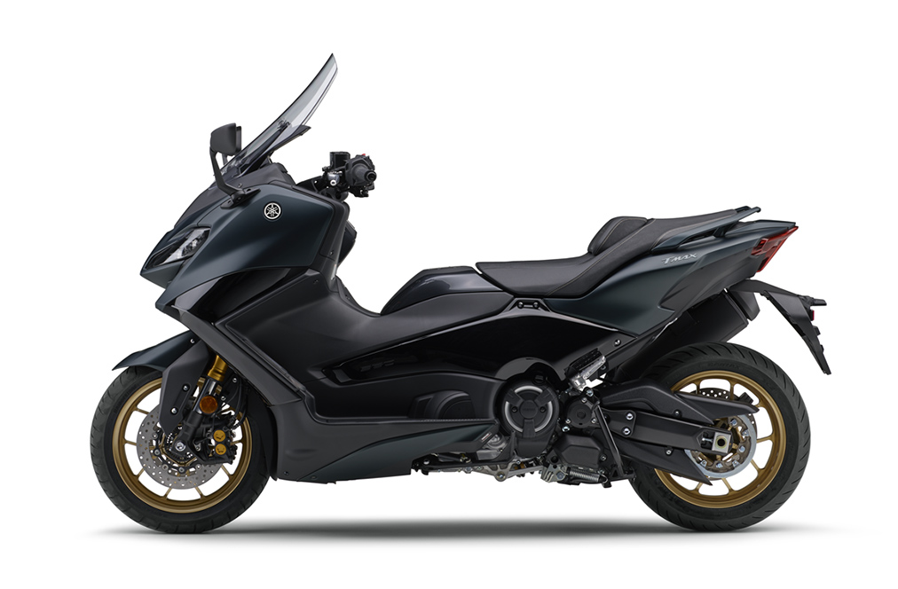 フロントフェイスは、2022年モデルの先端が真正面に突き出したアグレッシブなイメージから、少しあごを引いたようなジェントルな表情を醸し出すデザインに一新。MAXシリーズのフラッグシップモデルとしてNMAXやXMAXと同様に頭文字のTを強くイメージできるポジションランプを採用。左右ヘッドランプの外側サイドと下部に沿うように4箇所に配置し、Tの文字が浮かび上がり質感の高いイメージアイコンとなっている。