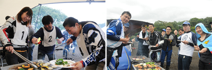 富士ヶ嶺会場の目玉は、みんなで食べるバーベキューと、バイクに乗らない人も楽しめるアウトドア・アクティビティの数々です。