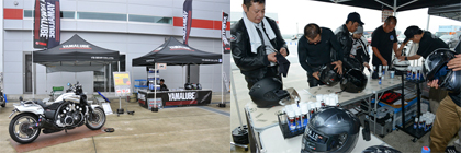 ↑VMAX用のアクセサリー展示の他、ケミカル用品のTouch & Tryを行ったワイズギアブース。走行前にはシールドの曇り止めを塗布するみなさんで大にぎわい