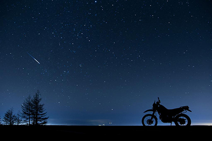 流れるように降り注ぐ星がきれいですね。影で映っているセローがなんともいい味を出してます。
