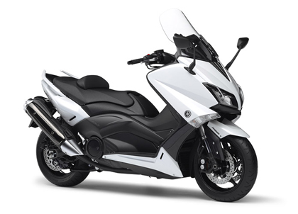 ↑今回の試乗会の隠れた目玉はコレ。いっそう精悍になった「TMAX530」。倒立式フロントフォークのしなやかな剛性感、スマートキーシステムの便利さ、高級車のような新デザインのメーターパネルなども、乗って触って確かめてください