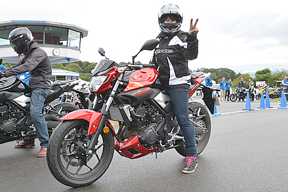 ポジションも上半身が起きていて目線が高くて見やすいです。カラーはレッドがカッコいいと思いますが、ちょっと目立ちすぎるので(笑)最初はブラック。だんだんバイクに乗り馴れて自信がついて来たら“私を見て!”みたいな感じ(笑)で、レッドがいいですね」