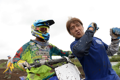 ↑最後もジュニアのトップライダー、小笠原大貴選手です。「2017モデルは高回転まで回るのにトルクがしっかりありましたね。滑らないで曲がることができたし、ブレーキも少しの操作でよく効いてくれました。来シーズンの詳細は決まっていませんが、ジュニアからステップアップするのでYZ250Fに乗ることになると思いますが、今から楽しみでなりません!」