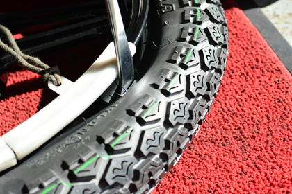 世界大会参戦に向けて毎晩練習していたというタイヤを持ち出し、基礎整備技術競技に出題されたタイヤ&チューブ交換の作業を笑顔で披露してくださいました。