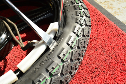 ↑ビードを外したあとにタイヤを立てると、簡単に取り外せるそうです。滅多に自分でタイヤ交換しないけれど、貴重なワンポイントを教えてもらいましたよ!