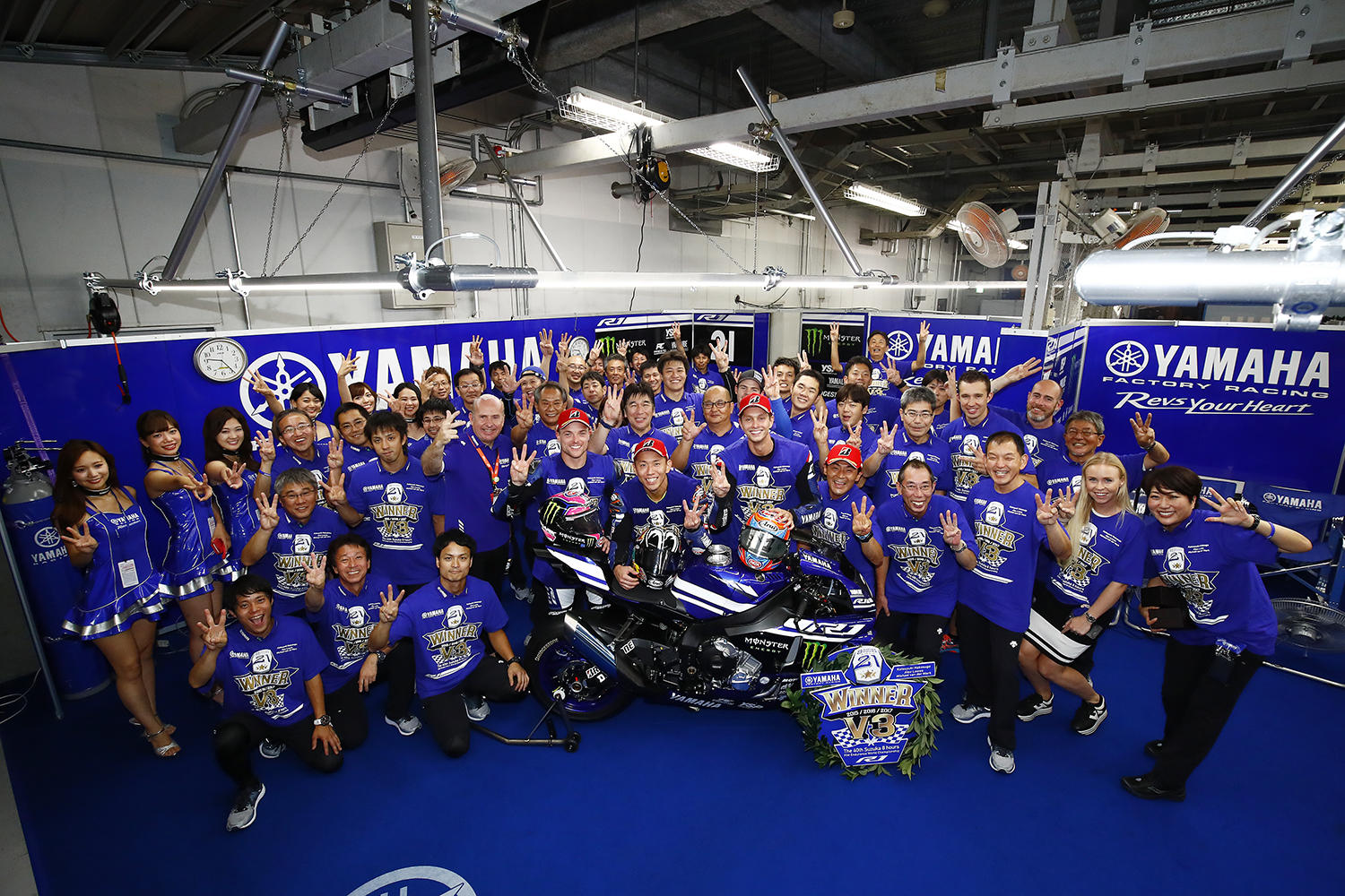 すでに皆さんご存知かと思いますが、7月30日(日)、鈴鹿サーキットで"コカ・コーラ"鈴鹿8時間耐久ロードレース第40回記念大会の決勝が行われ、「YAMAHA FACTORY RACING TEAM」が、2015年、2016年に続き、ヤマハ初となる鈴鹿8耐3連覇、通算では7回目の優勝を達成しました!!