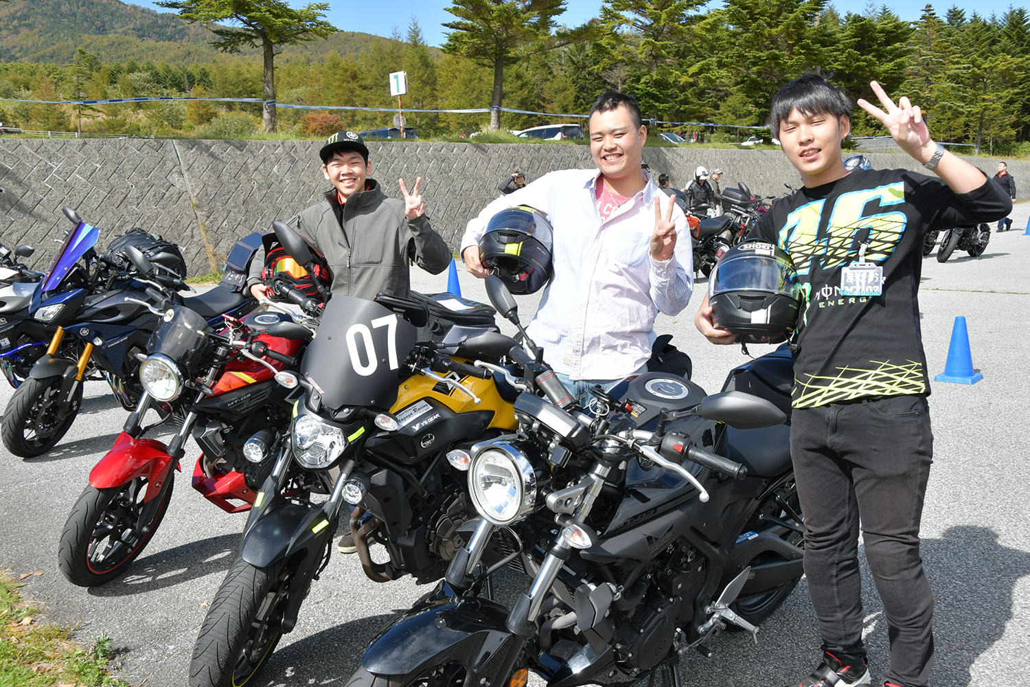 MT-07オーナーさん(中央)は、免許を取得して初めてのバイクにMT-07を選択。