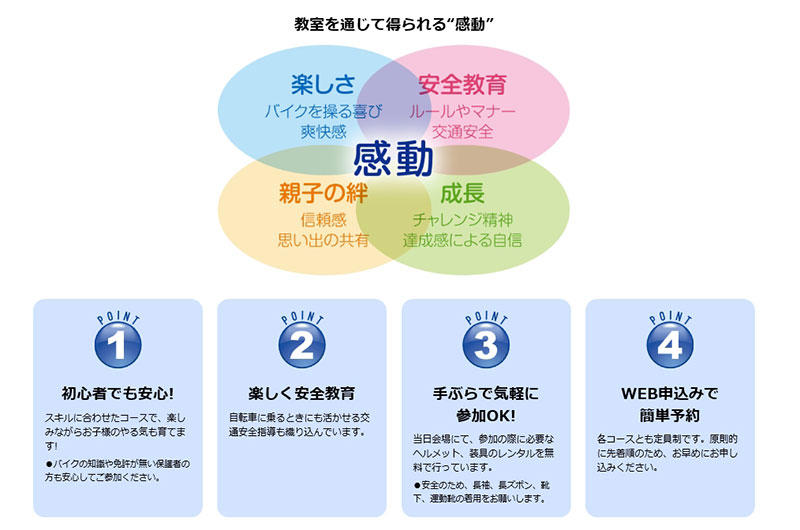 「バイクを反対されている」「趣味に理解が得られない」「バイクに乗るのは危ないと言われてしまう...」そんなお父さん方も、ぜひ家族で教室にお越しください!
