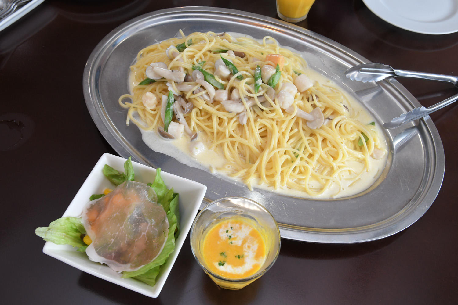 貝柱としめじのクリームスパゲッティーをいただきました。
