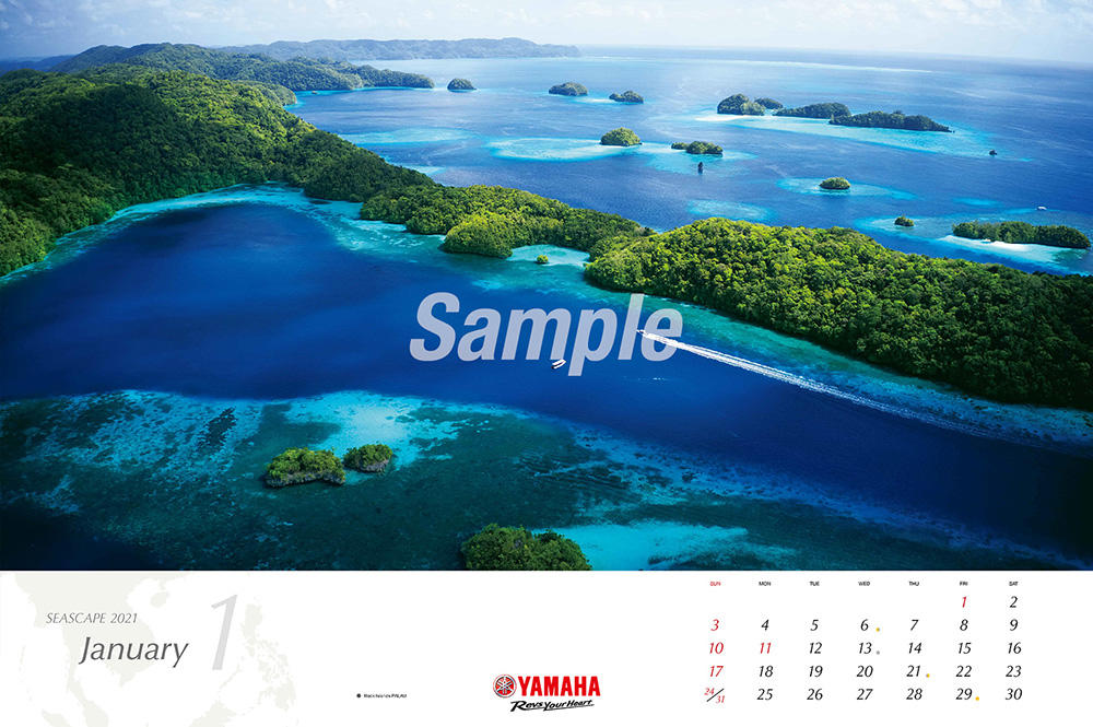 世界中の海とヤマハのボートや船外機を撮影したカレンダーです。