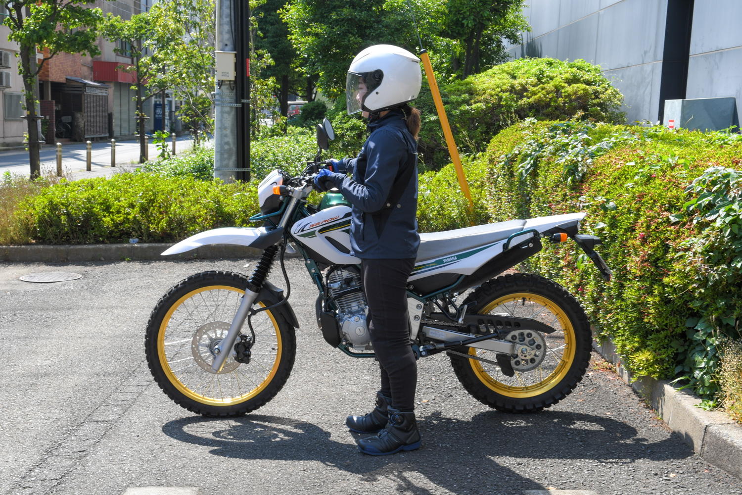 まず最初にバイクの左側に立って、バイクを垂直な状態にし、ハンドルも真っすぐにして視線は必ず進行方向を見るようにしましょう。不慣れな方ほど、手元を見てしまうことが多いです。