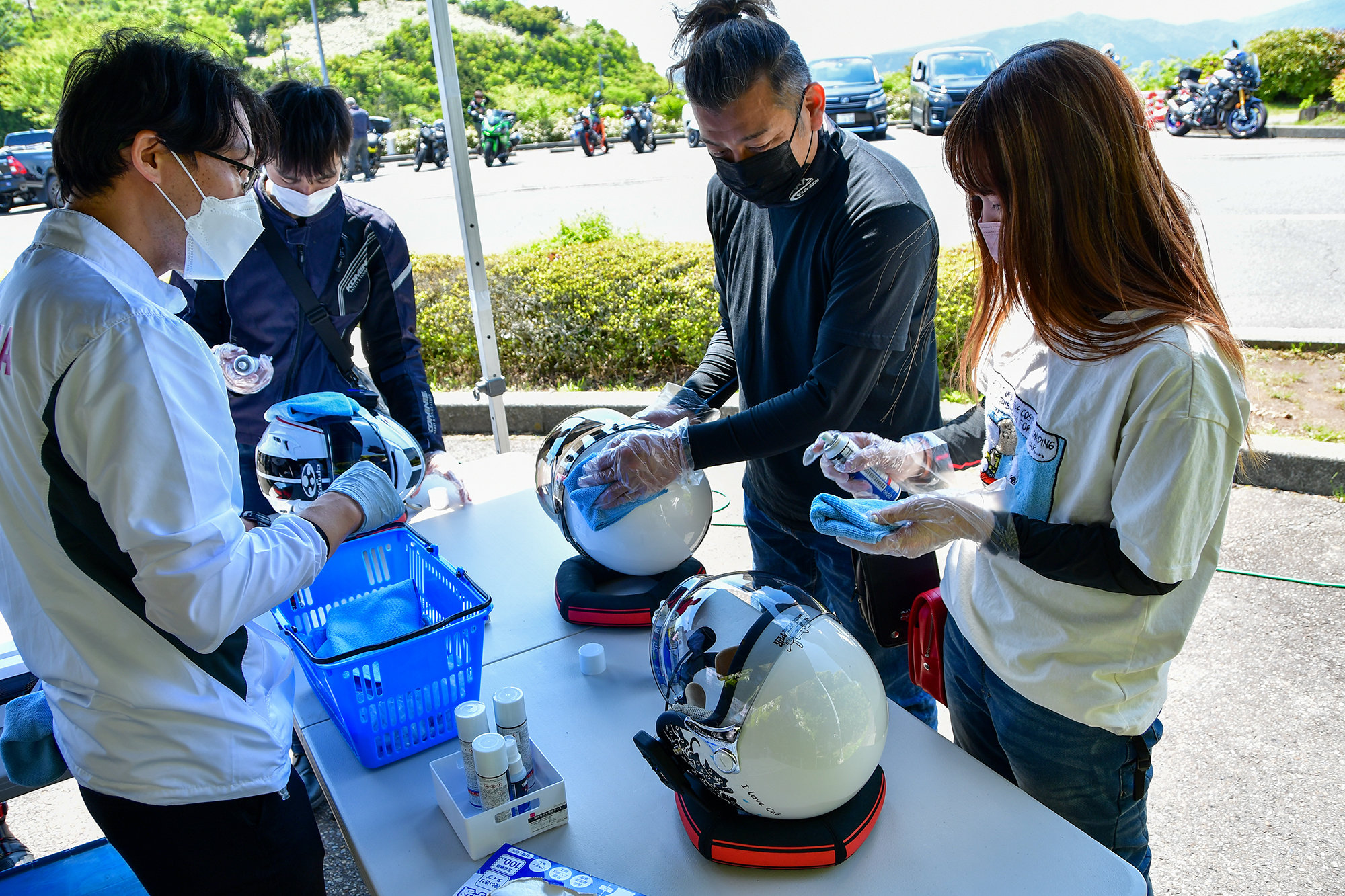 さらにYAMALUBEケミカルを使ったヘルメットのメンテナンスも無料で体験できます。