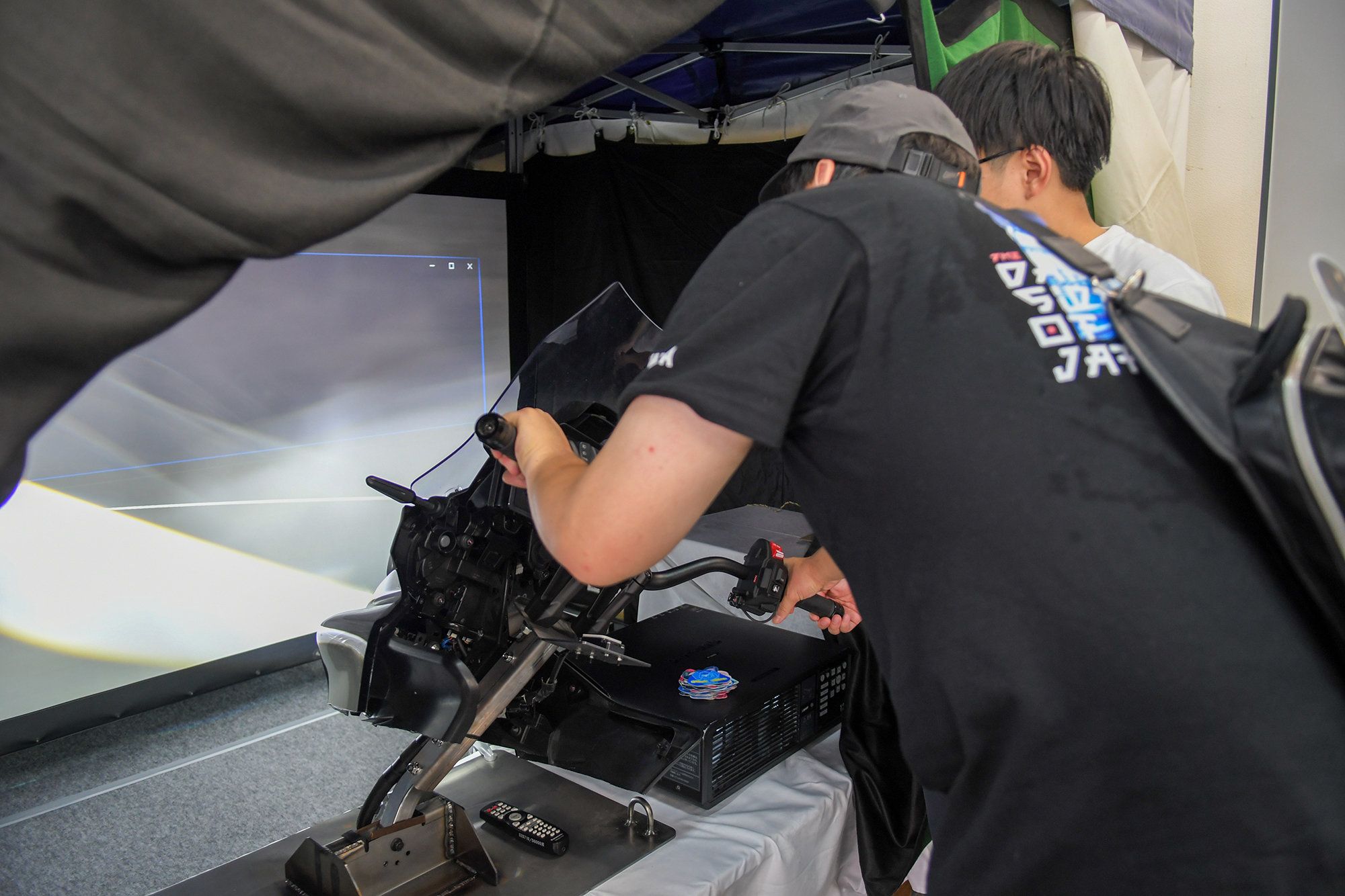 なかなかお目にかかる機会の少ないMonster Energy Yamaha MotoGPの#20 F・クアルタラロ選手のマシン「YZR-M1」も展示していて、レースファンのみなさん思い思いにまたがって記念撮影いただきました。