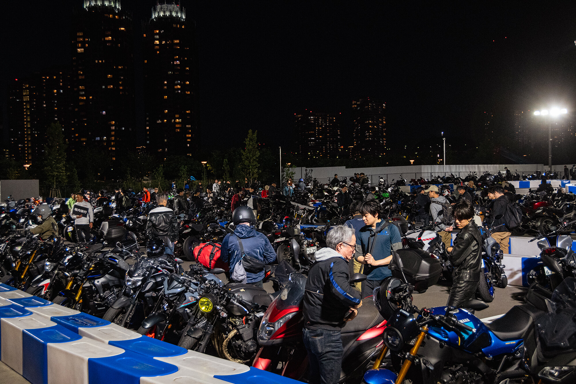 高層ビル群のネオンがきらめく中、クールな表情のMTシリーズが続々と集まってくる光景は、まさに「The Dark side of Japan」を地で行く様で、圧巻でした。
