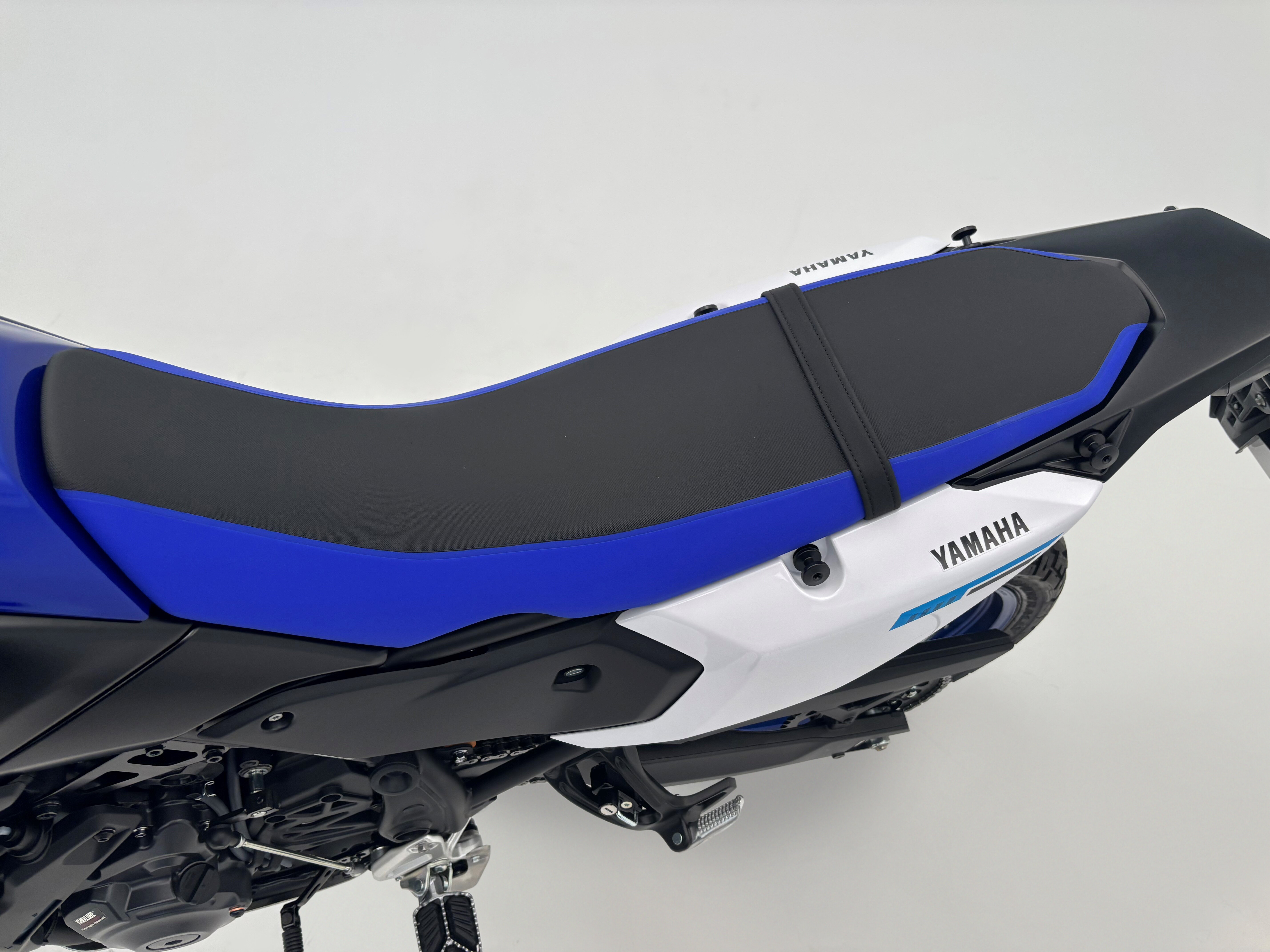 Ténéré700の強みは、高いオフロード性能ですので、ライディングポジションの自由度をさらに上げる作り込みを行っています。2020年モデルではメインシートとタンデムシートが別体型でしたが、一体型のフラットシートにして、ライダーがシートの上でより動きやすいよう改良を図っています。