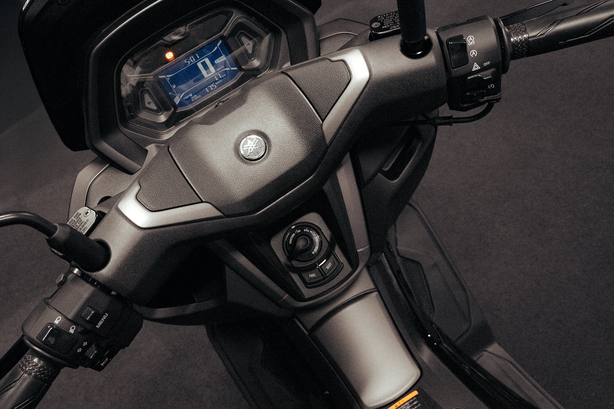 外観のみならず細部にもこだわろうと、内装の作り込みも行いました。所有感や気分を高めてくれる高品質なエンブレムを用意し、NMAX155はロゴ入りのこだわったシートにしています。メーターもただ単にサイズアップを図るのではなく、走りに集中できるよう、視線誘導が少ない場所に配置し、さらに走行中に求められる情報を必要最低限に整理しています。