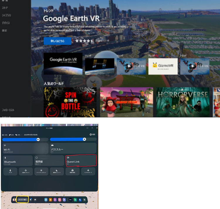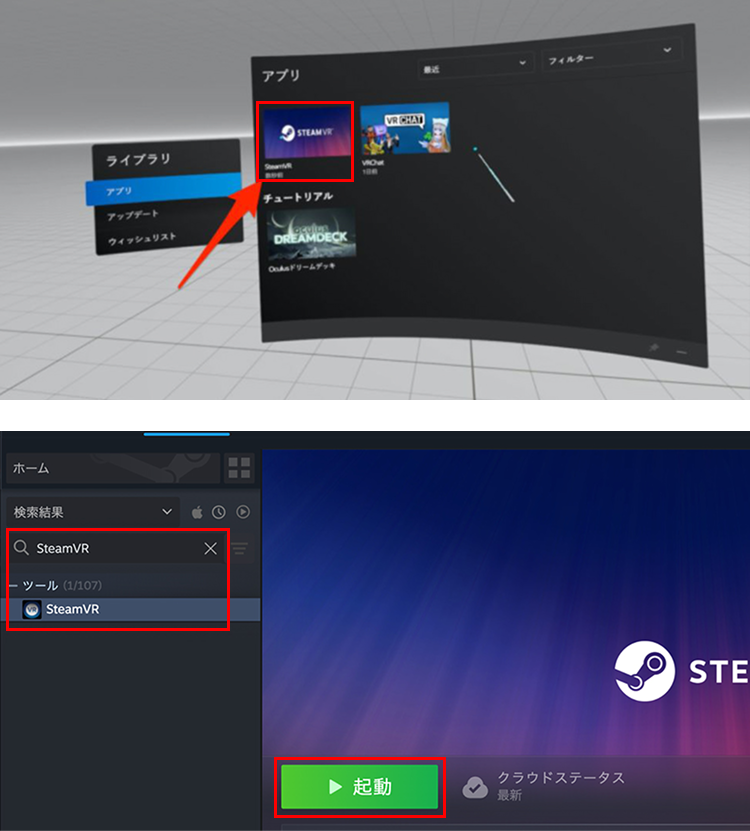 【パターン1】Quest側:アプリの中から、SteamVRを起動する