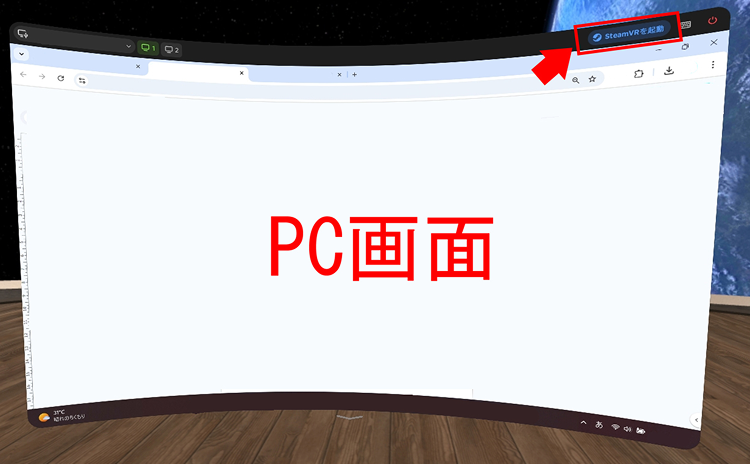 【パターン2】PC側:(Questの画面が夜空の空間、SteamVRホームになったら)VRChatを起動する。 -