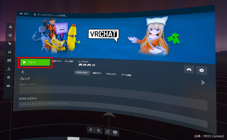 1. ライブラリで「VRChat」を選択し「▶プレイ」をクリックします。