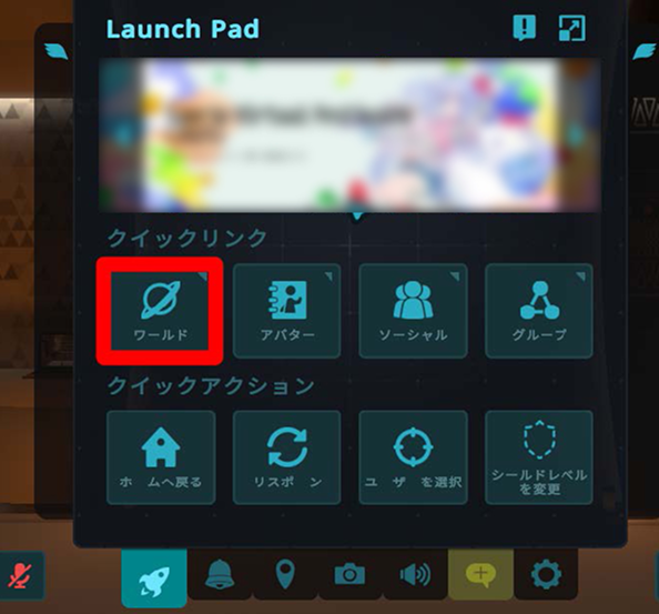 1. ログイン後、キーボードの「Escキー」を押してメニューを開き、「ワールド」を選択します。 -
