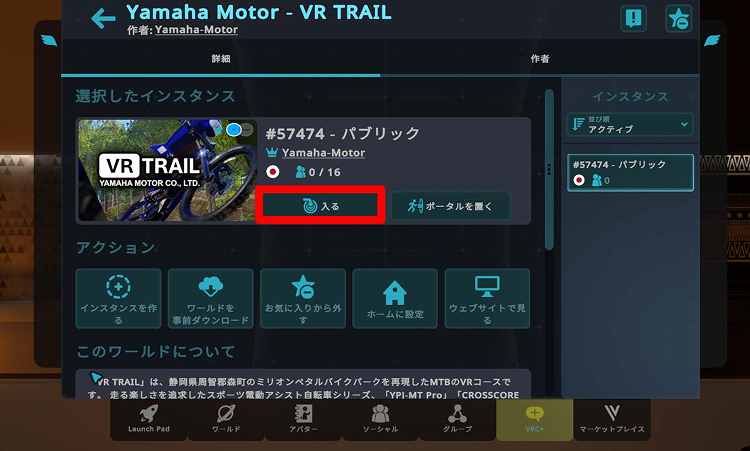 5. 「入る」をクリックすると、ワールドに参加できます。
